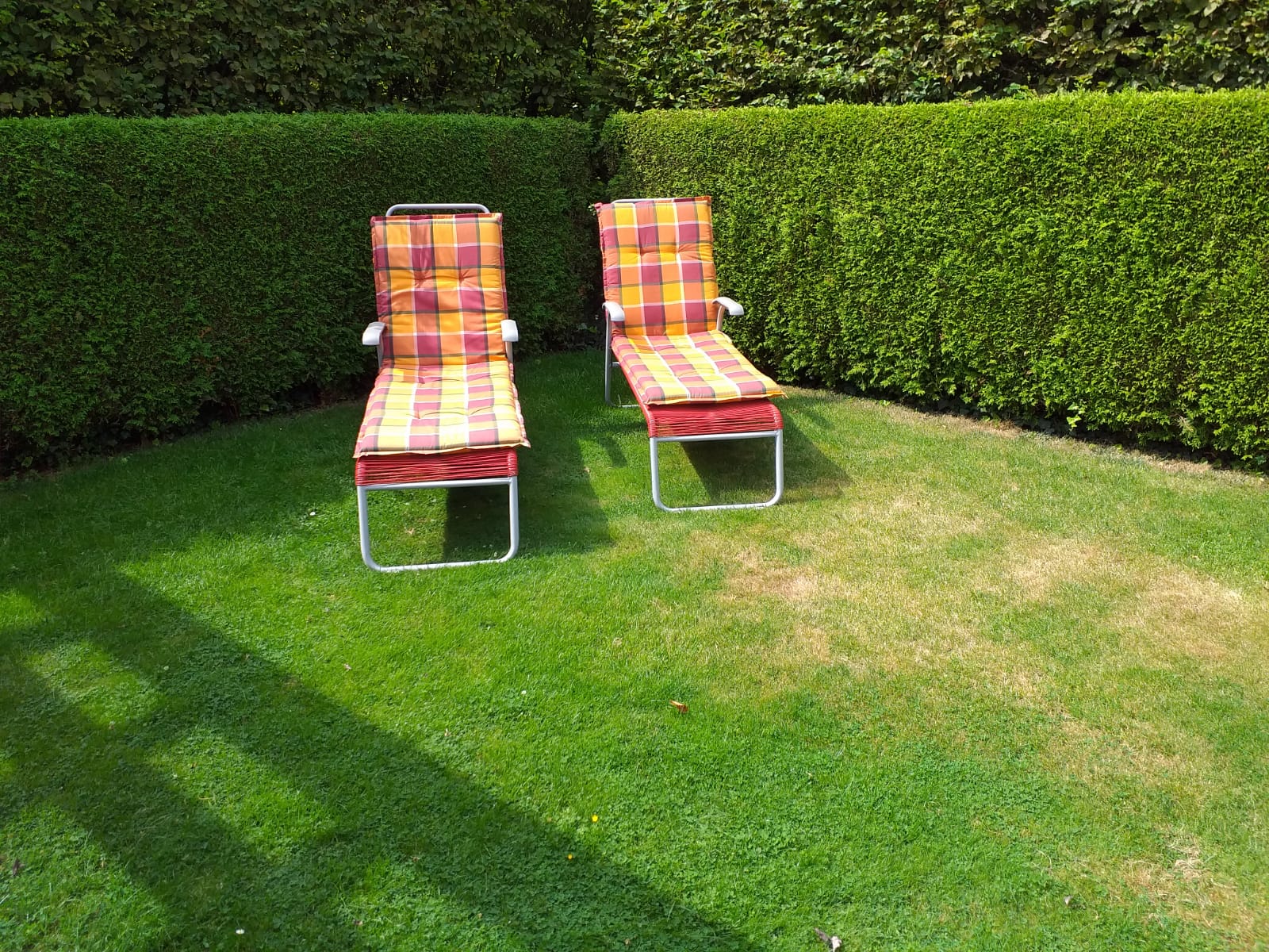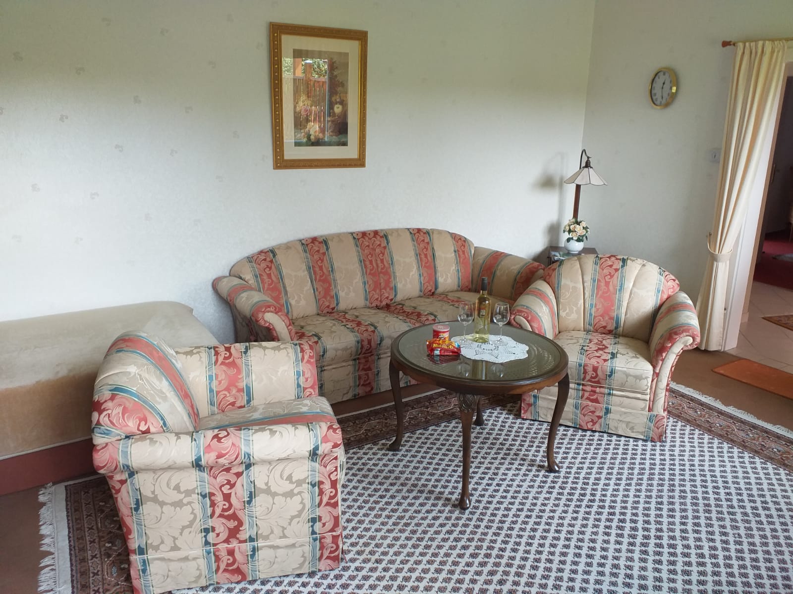 Durch das Wohnzimmer kommen Sie auf ihre überdachte Terrasse mit Garten und Liegewiese.